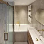 Esta villa dispone de un cuarto de baño con bañera, un inodoro separado y ducha. Los cuartos de baño también están equipados con secadora para tu comodidad.